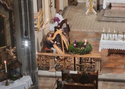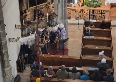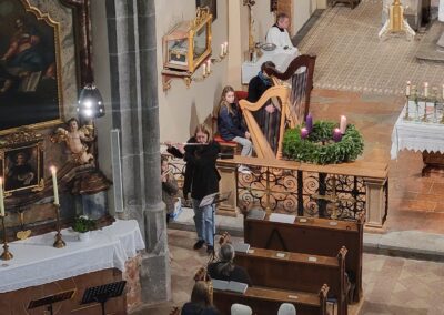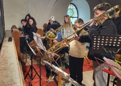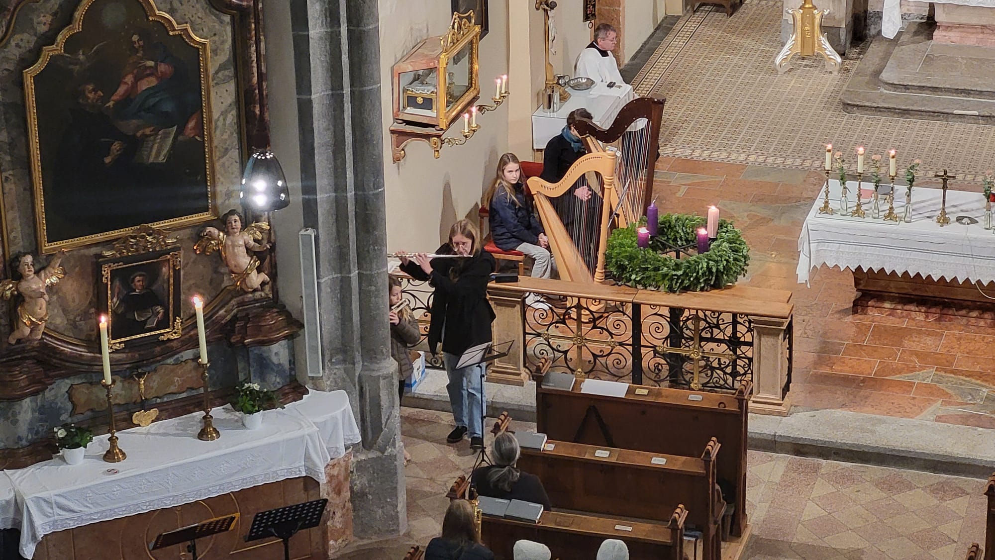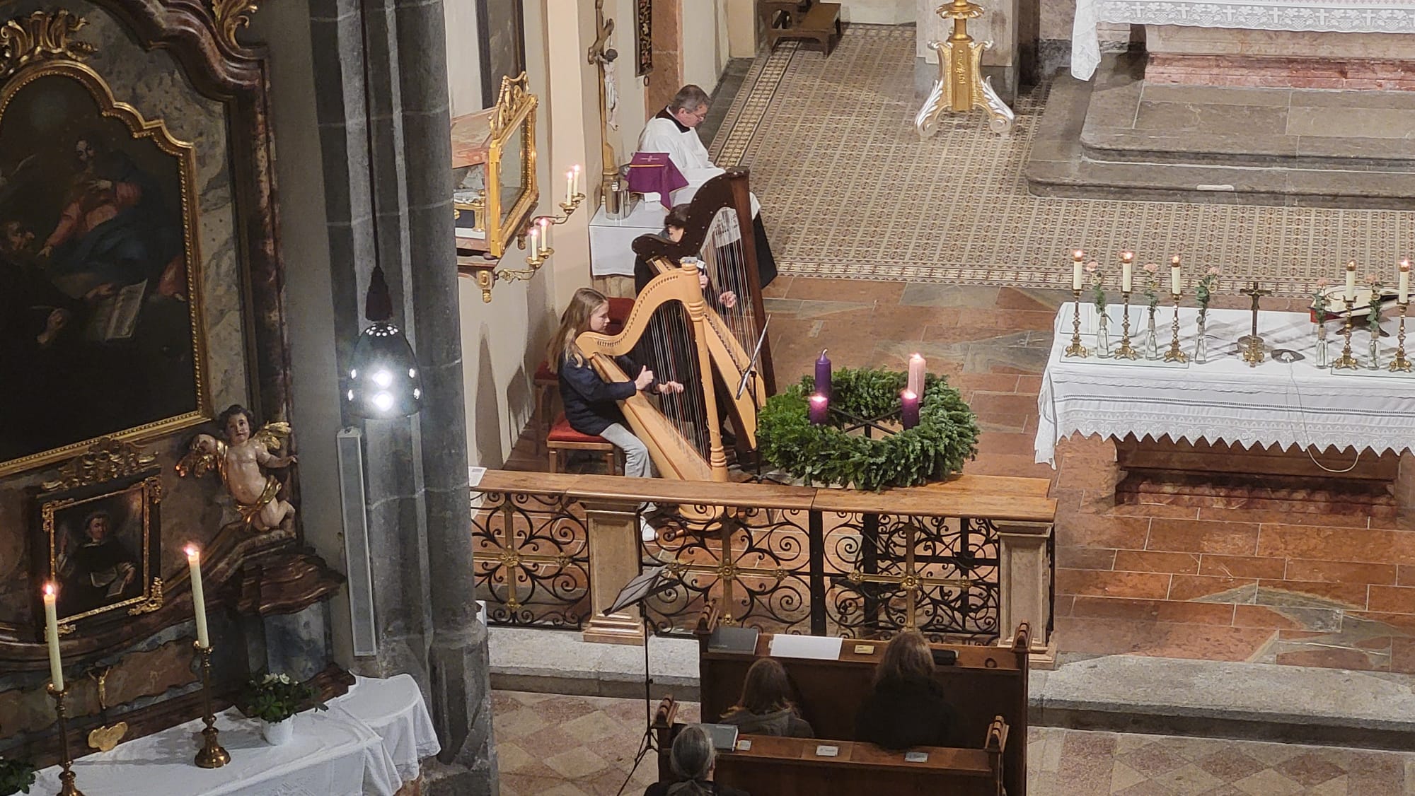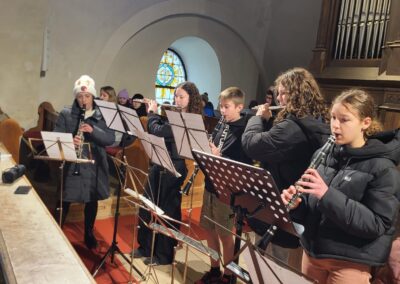 Zahlreiche Ensembles rund um die Blech- und Holzbläser, Harfen und Gitarren sorgten für eine besondere musikalische Umrahmung. Aus den verschiedensten Ecken der Kirche erklangen die vorbereiteten Stücke. Die abwechslungsreiche Gestaltung machte den Gottesdienst zu einem stimmungsvollen und klanglich außergewöhnlichen Erlebnis für die Kirchenbesucher sowie unsere Jungmusiker:innen. Vielen Dank an die Pfarre St. Gallen für ihr Vertrauen und an alle Lehrkräfte sowie die Mitwirkenden Schüler:innen.